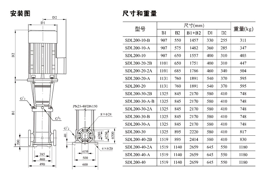 南元SDL200/SDLT200立式多級離心泵有不同的泵規(guī)格和不同級數(shù),以滿足所需的流量和壓力。
