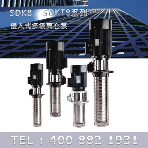 SDK8/SDKT8為配用標(biāo)準(zhǔn)電機(jī)的非自吸立式多級(jí)離心泵,電機(jī)軸和泵軸用聯(lián)軸器直接聯(lián)接的結(jié)構(gòu)。為滿足水槽或容器的安裝深度,可安裝空套的腔體來改變泵本身的侵入 深度。