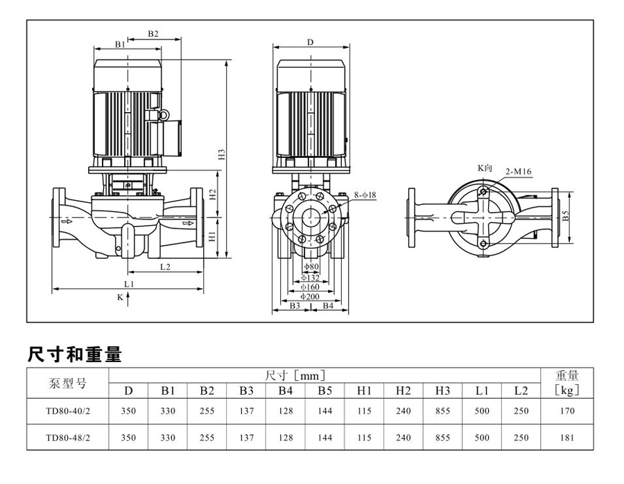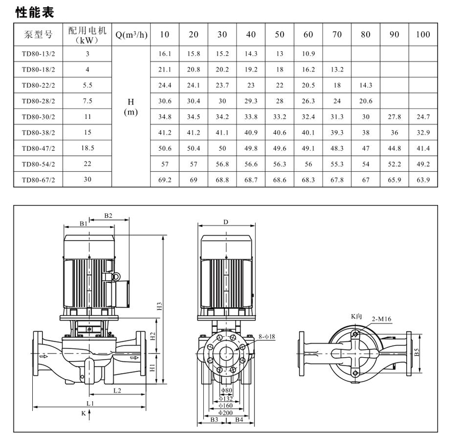TD80系列單級(jí)管道離心泵,配有標(biāo)準(zhǔn)電 機(jī)和機(jī)械密封。此類產(chǎn)品的結(jié)構(gòu)與相近類型產(chǎn)品相比,更不易受到泵送液體中雜質(zhì)的影響。產(chǎn)品設(shè)計(jì)為頂部可拉出的拆裝形式,其可 以在不影響管路系統(tǒng)的情況下對(duì)泵進(jìn)行維修。所有泵采用創(chuàng)新式便拆式機(jī)械密封,更好機(jī)械密封無需拆卸電機(jī)。